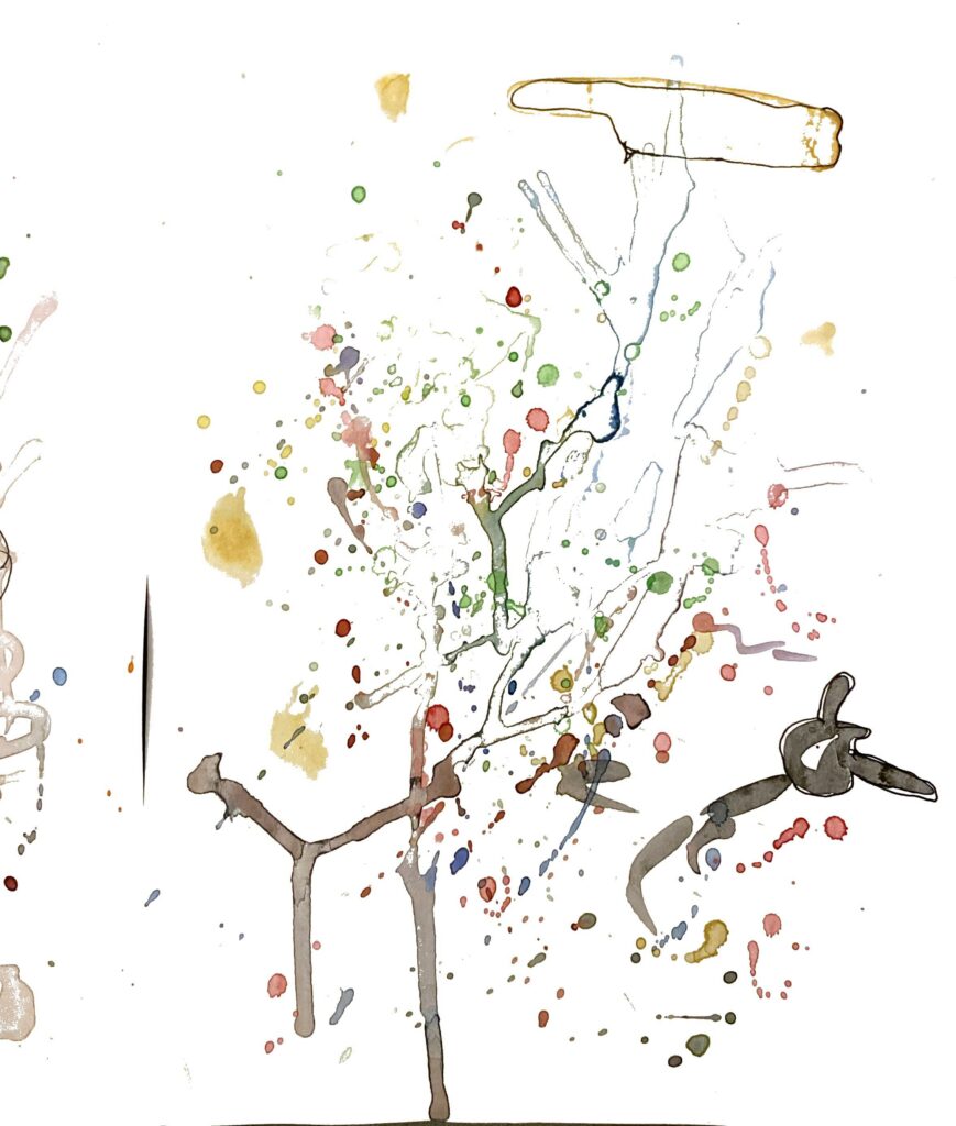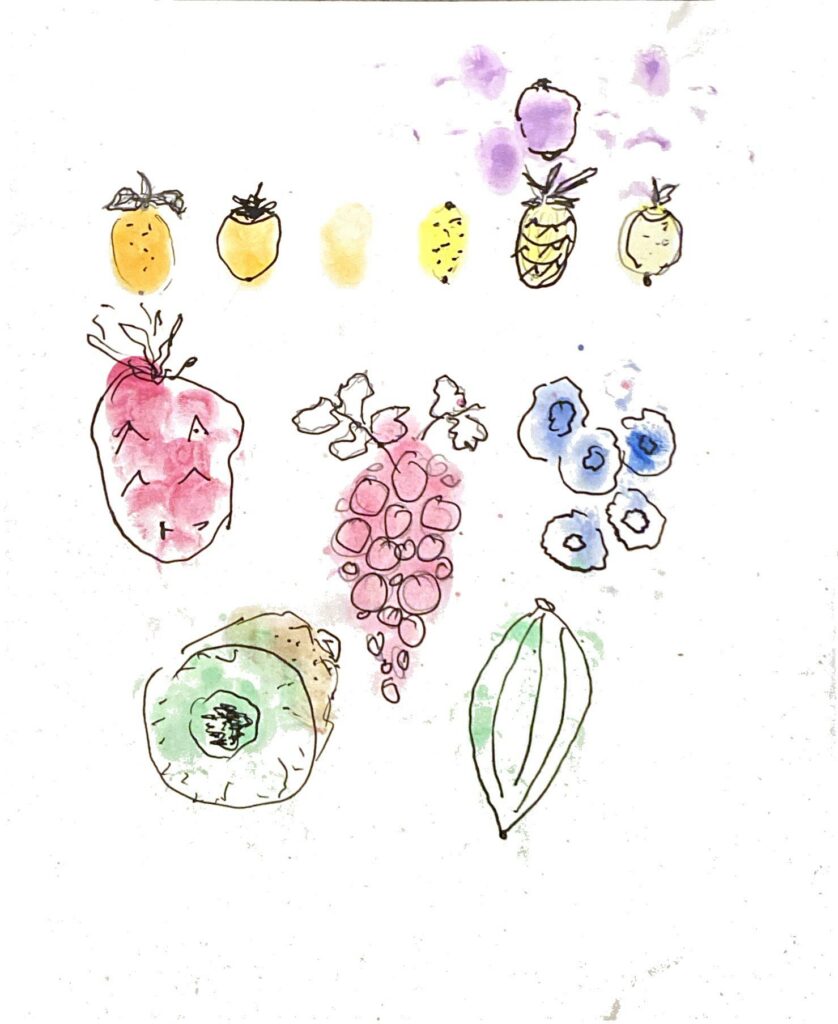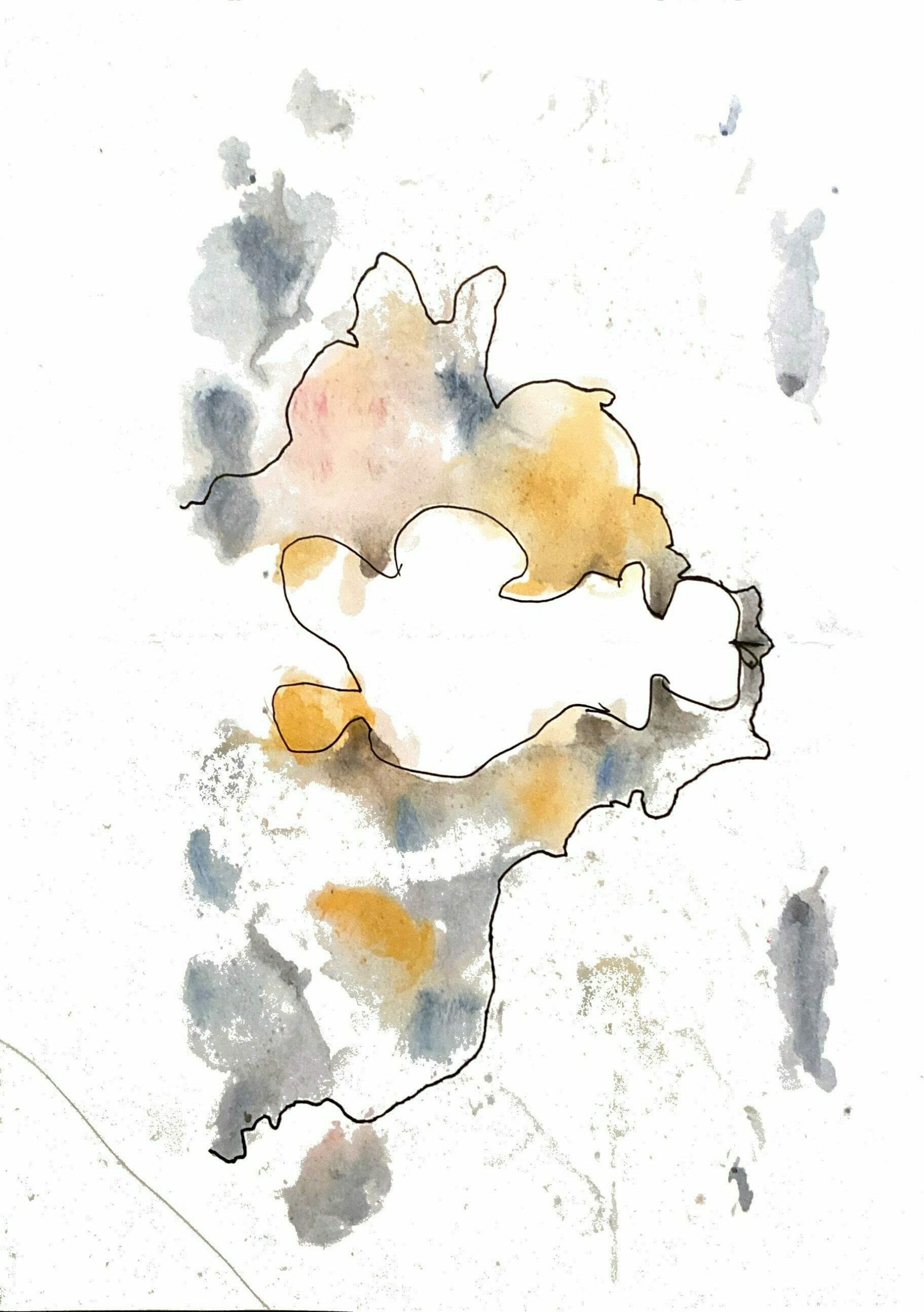 Hier arbeiteten wir mit Pinsel und Wasserfarbe und probierten uns an Spritztechniken, der Fingerabdruck-Technik, sowie der Abklatschtechnik – um final die entstandenen Formen und Farben „auszudeuten“. Das bedeutet, wir wurden Kunstforscher*innen und suchten in den Bildern nach Bekanntem, obwohl nichts mit Absicht entstanden war. „Verboten“ war es direkt zu malen / Formen zu zeichnen – nur der Zufall sollte unsere Werke entstehen lassen.